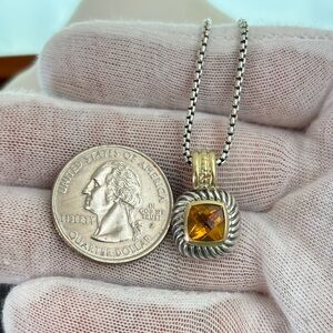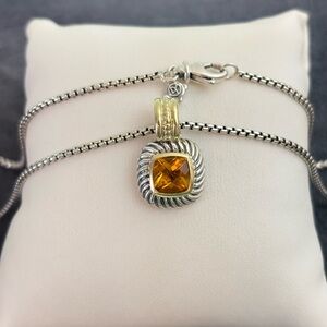 David Yurman sterling silver & 14k gold small albion pendant necklace with faceted citrine. Excellent preloved condition! Recently cleaned and professionally polished to high shine. Retail price $795