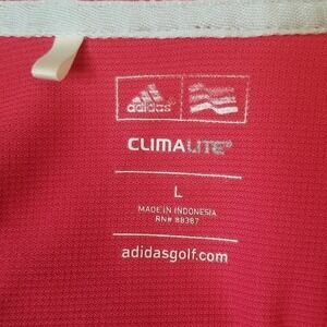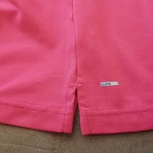 Brand: Adidas Climalite Size: L ClimaLite salmon pink short sleeve golf top. 3 button at top. collared. small waffle knit material.