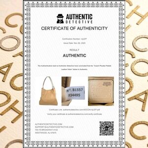 COACH Phoebe Pebbled Leather Shoulder Bag. This is a gorgeous bag! The leather is buttery soft. With 2 large pockets and a smaller center pocket, this is a roomy bag ! Of course no scuffs, odors or tears. As I said it is Like new!