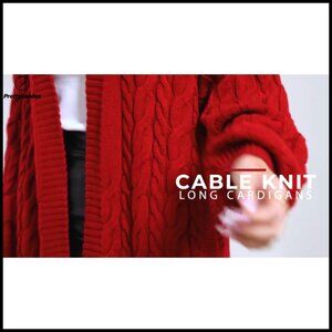 Long Sleeve Cable Knit Cardigan Sweater with Pockets, Open Front