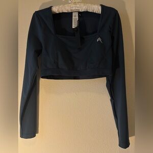 NWT Oner Active Effortless Square Neck Crop Long Sleeve Top Oil Blue