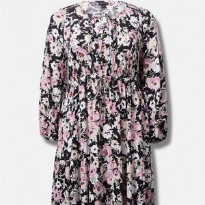Torrid - Midi Swiss Dot Pleat Long Sleeve Dress in Brushstroke Multi Floral