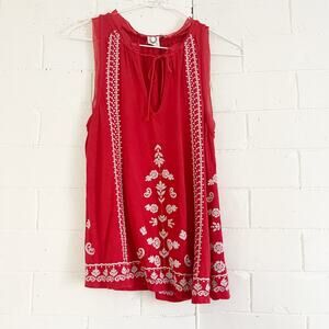 ANTHROPOLOGIE Akemi & Kin Embroidered Sleeveless Top Red Small S