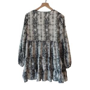 Altar'd State Animal Print Mini Dress Size Small Gray Ruffle Babydoll Bohemian