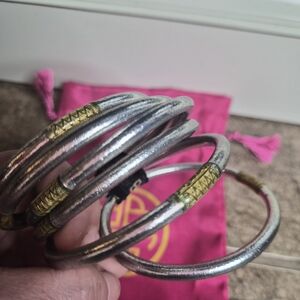 This elegant bangles feature a stunning combination of silver and gold tones, perfect for adding a touch of sophistication to any outfit.