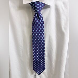 Add a touch of sophistication with this classic blue tie featuring a stylish polka dot design. Perfect for any formal occasion. 100% silk