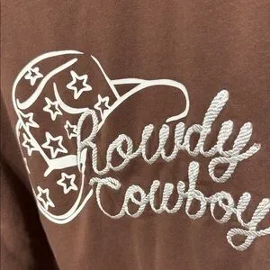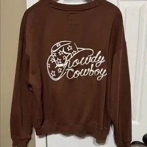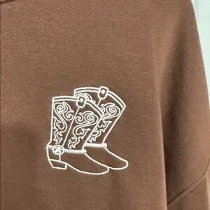 Discover comfort and style with this brown crewneck top, featuring a charming embroidered boots design. Ideal for casual outings.