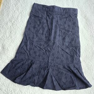 Ann Taylor Navy Eyelet Flounce Pencil Skirt Petite