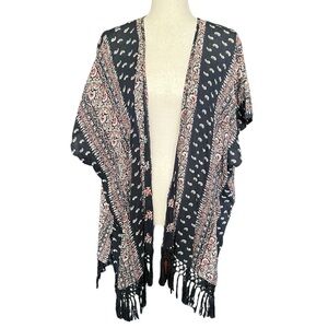 Super beautiful cotton and viscose oversized cover up to wear on your next vacation at the pool or wear as a kimono over a shirt. Floral design with paisley detail and tie fringe on the border. Super soft feel.