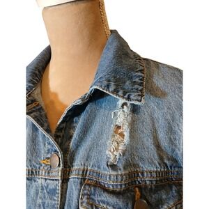 Rue 21 Distressed Denim Shirt Jacket Medium Wash Ripped Frayed Hem Shacket