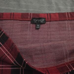 Chic tartan design. Bold red and black colors. Mid length pencil skirt. Soft to the touch. Perfect for stylish outings. Stretchy elastic band, no zippers.