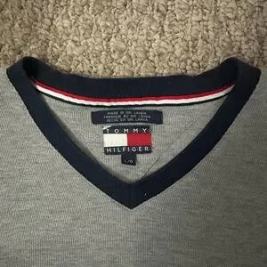 Tommy Hilfiger Gray V-Neck Sweater with Navy Trim 2003