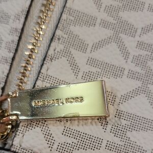 Chic Michael Kors wallet with signature logo pattern. Cream color with gold-tone hardware. Ideal for everyday use. Matches bag in my closet.