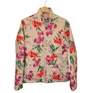 Lands End Women’s Quilted Floral PrimaLoft Jacket Size Medium