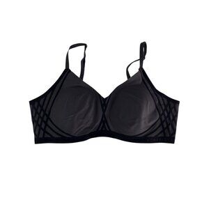 HONEYLOVE Women's Black Wire Free Padded Velvet Pattern Bra Large