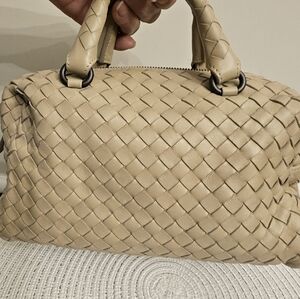 Bottega Veneta Intrecciato Leather Satchel / Crossbody โ Beige (Mirror Included)