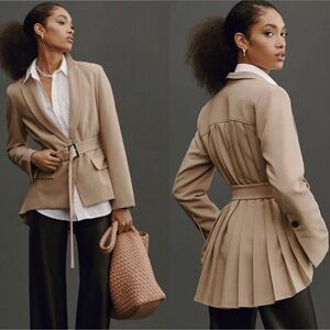 Anthropologie Maeve Pleated-Back belted Blazer M