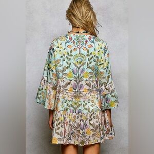 POL “ Sunlit Bloom “ Babydoll Mini Dress | Blue / Pink