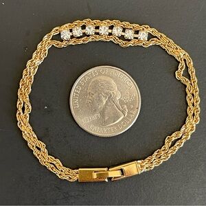 Elegant Gold tone rope Chain rhinestone Bracelet