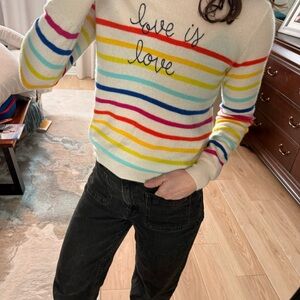 Our classic cashmere crewneck with "love is love" hand-embroidered across the front. 100% Cashmere. Sustainably sourced and hand-stitched in NYC.