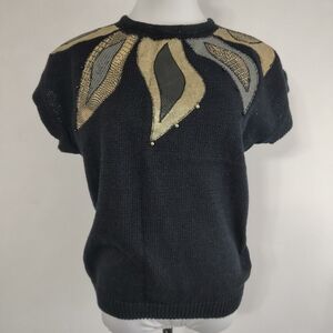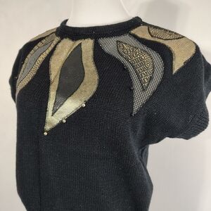 Maximalist Glam Black Women's Sweater 80s Vintage Top by Evian