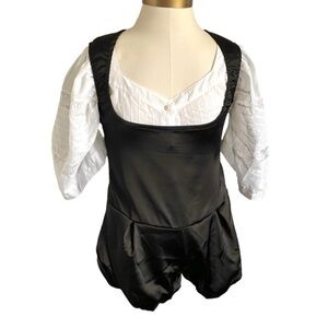 Black Satin Deep U-Neck Sleeveless Shortalls Romper - S, perfect for Oktoberfest