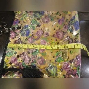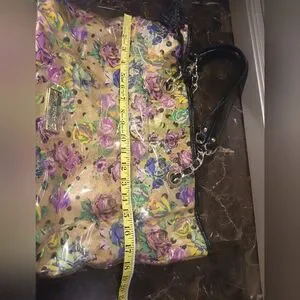 Stylish floral tote bag with a vibrant gold background. Perfect for adding a pop of color to any outfit. Super Cute bag. Very roomy and clean. A bit of wear noted to bottom of bag (See pictures)🧡