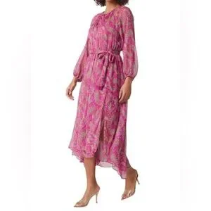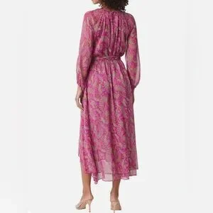 MISA Los Angeles Leila Fuchsia Paisley Chiffon Midi Dress | XS (Fits Small)