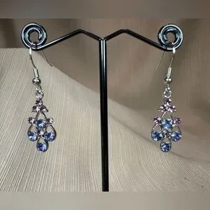 Add a touch of elegance with these stunning silver and purple dangle earrings. Perfect for any occasion.