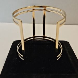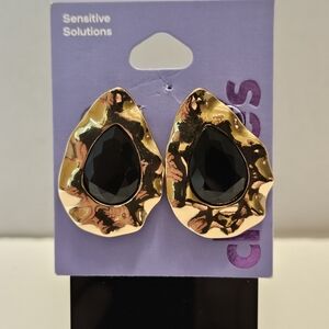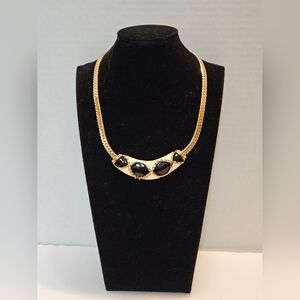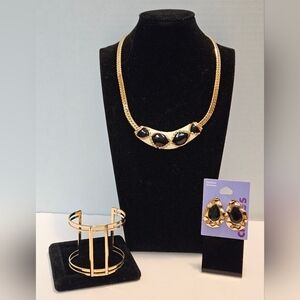 Chic gold tone necklace with bold black enamel inlays. Includes matching cuff bracelet and a pair of NWT Claire's earrings.