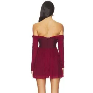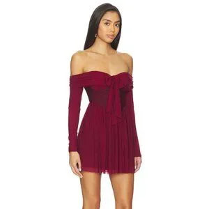 NEW MORE TO COME Kristiana Mini Dress Plum Red Purple Long Sleeve Cold Shoulder