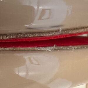 Soles/red bottoms have been retouched on the exterior- below the ball of the foot to toe. Arches/Louboutin have not, they are original.