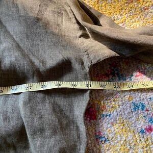 Eskandar green linen lagenlook pocket boxy high low button tunic oversized