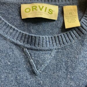 Orvis Sweater Mens Size XL Blue 100% Cashmere Crew Neck Pullover