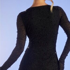 black long sleeve dress with glitter detail.