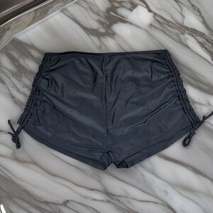 New XLarge Black Adjustable Swim Shorts Bottoms Bikini Mid-Rise Booty Drawstring