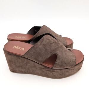 Mia Reta Platform Wedge Slide Sandal Cutouts Women's Brown Size US6