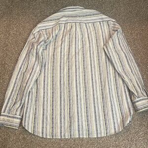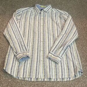 Tommy Bahama Men’s Multicolored Striped Long Sleeve Button Down Shirt. Excellent used condition, Armpit to armpit is approximately 23.5” and length is approximately 30.5”