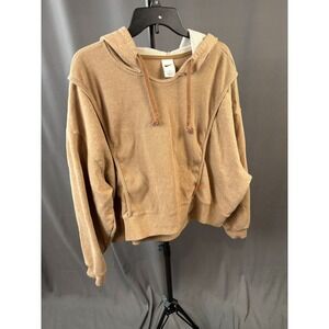Nike Light Brown Ribbed Panel Oversized Cropped Fleece Hoodie Women's Size 3X