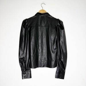 Express Women’s Black Faux Leather Ruffle Shoulder Button-Up Shirt Size XS NWT