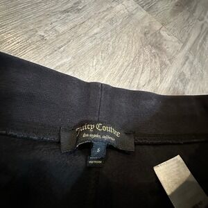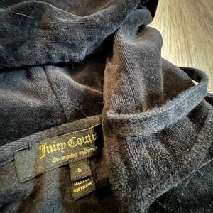 Juicy Couture Black Velour Tracksuit Set Hoodie Wide Leg Pants Women Small