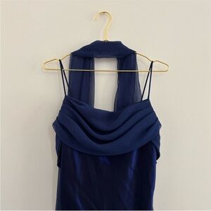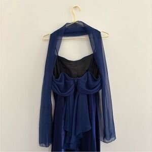 Blue Satin Maxi Dress With Scarf Sz XL Cobalt / Navy Vtg Y2K