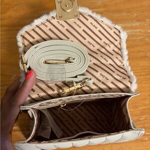 Aldo Cream Satchel with Gold Accents