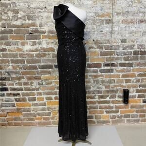 Betsy & Adam Formal Evening Gown Women 8 Black Sequin One Shoulder Wedding Party