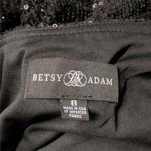Betsy & Adam Formal Evening Gown Womens 8 Black Sequin One Shoulder Wedding Party Mother of Bride/Groom Prom Pageant Romantic Maxi Dress