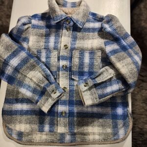 gap blue paid buttonup jacket Cozy checkered shirt with button closure. Features blue and gray pattern. Perfect for casual wear.