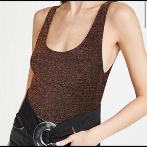 Reformation Saturn Bodysuit Copper Bronze Brown Metallic Sleeveless Scoop M