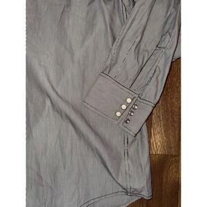 Lucky Brand Western Shirt XX Large Blue White Pinstripe Cotton Long Sleeve Snap