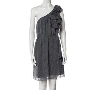 REBECCA TAYLOR Silk One-Shoulder Ruffle Waterfall Dress in Grey Size M/8 -- WOW!