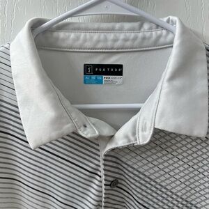 PGA Tour Pro Series Men's XL White Grey Diagonal Pattern Athletic Fit Golf Polo